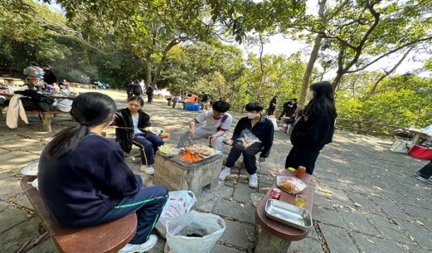 S1 to S3 students went to Aberdeen Reservoir Country Park on 18 January 2023. That day was a sunny day, the blue waters and green hills made people feel refreshed. Teachers and students barbecued together, took a stroll, and went on hiking trails, to relax physically and mentally, and shared a joyful time.