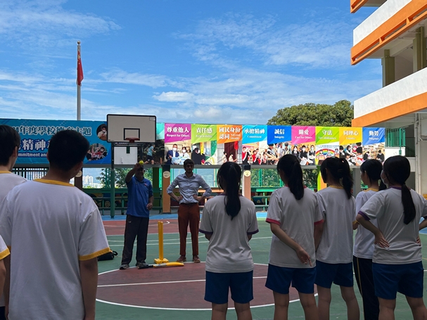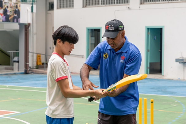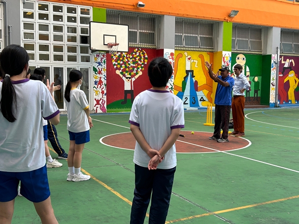 Hong Kong. The coach explained the role of a cricketer and demonstrated passing,