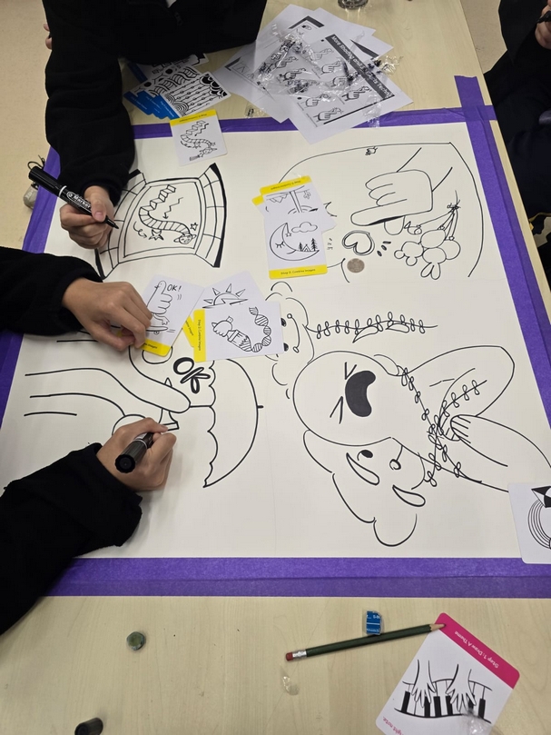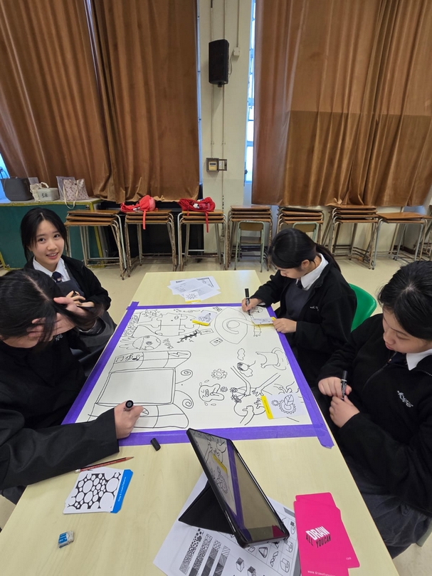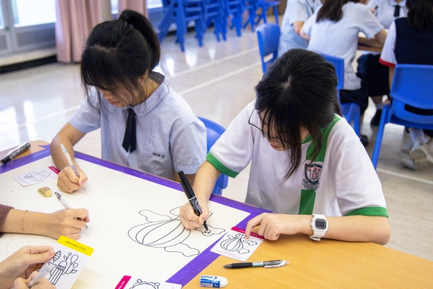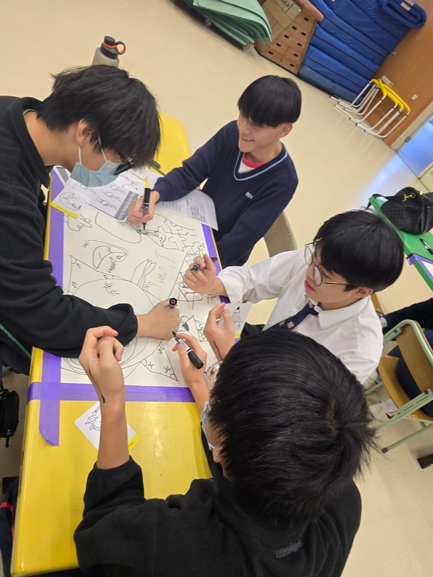 The educational psychologist of our school arranged the activity "Drawing Love and Moving Forward Together" for S5 and S6 students on 15th and 29th November 2024, allowing students to express themselves or their classmates with black dots, lines and simple images. Through the easy and interactive drawing process, students learnt to listen to everyone's voices with a non-judgmental attitude, and how to offer constructive and supportive advice.