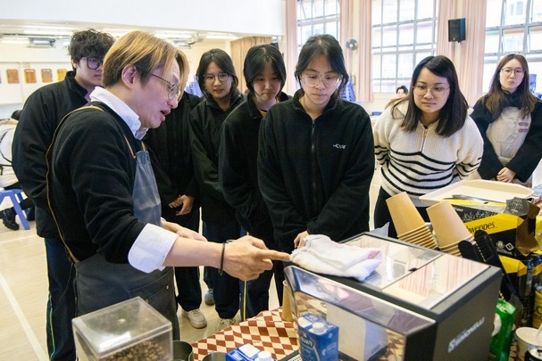 本校生涯規劃組及訓輔組在1月2日為中六級同學安排師友計劃四:心流咖啡活動。當天本校老師首先充當「侍應生」,為所屬組別同學下單,並送上食物和飲品。及後角色調換,同學們接受專業咖啡師的指導後,製作拉花咖啡給老師享用,最後全校師生更一同撰寫「心流賬單」,給予自己和他人真摯的祝福。活動過程中增進了師生間的感情,亦提高了幸福感。