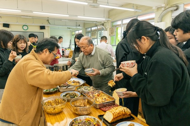 為讓同學在應對公開考試期間能放鬆減壓,並鼓勵大家培養健康的生活習慣,減少高油鹽外食,校長與多位老師於01月20日午膳時段,為3月至5月份生日的師生及職員工友籌辦了第3場「閩僑住家飯」活動。前兩場活動的大厨一如既往的高水準烹飪,並新增一位神秘嘉賓,她的意粉與Mary老師的經典西餐相互映襯。現場暖意融融,師生們圍坐品嚐美食、閒聊互動,歡聲不斷。此次活動不僅緩解了同學備考疲憊,更傳遞了閩僑大家庭的溫暖,進一步營造出和諧、正向、健康的校園氛圍。