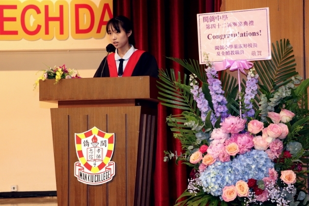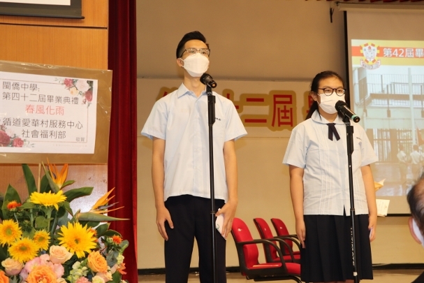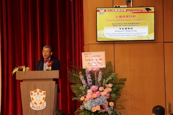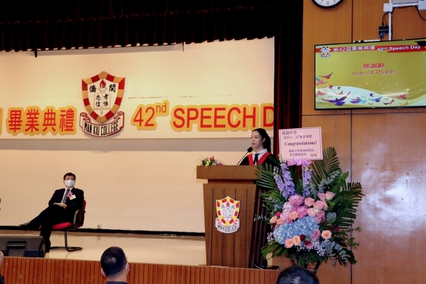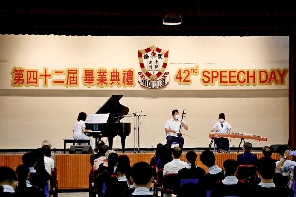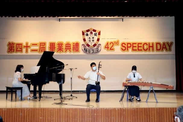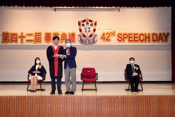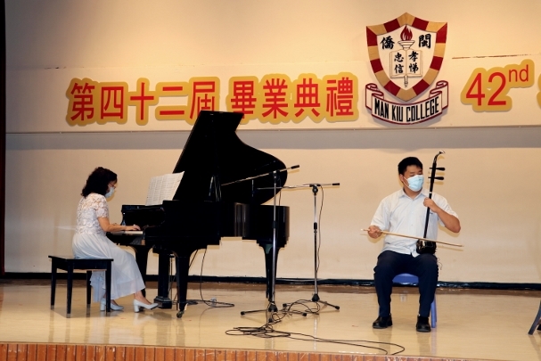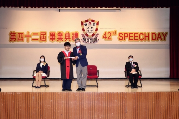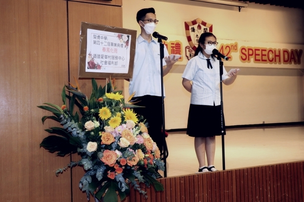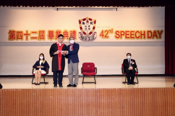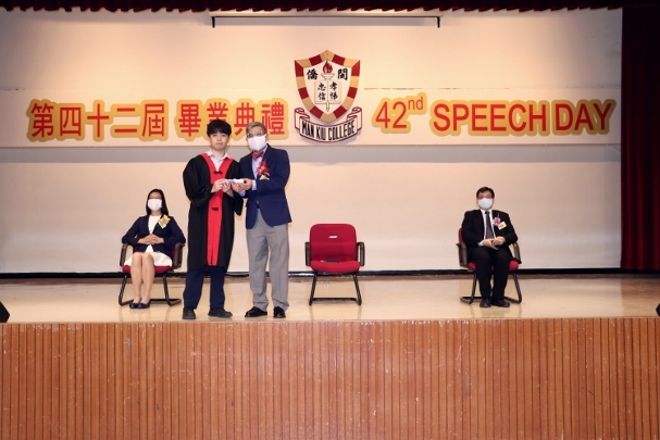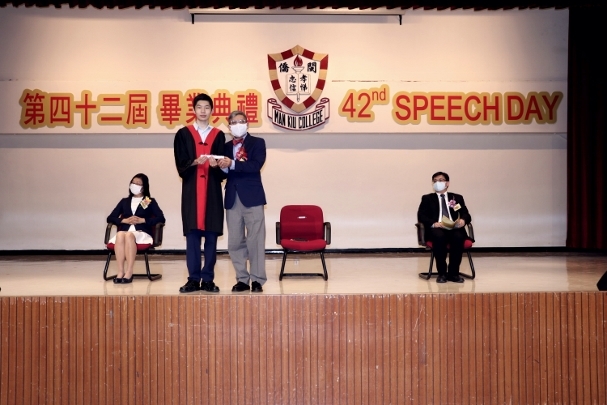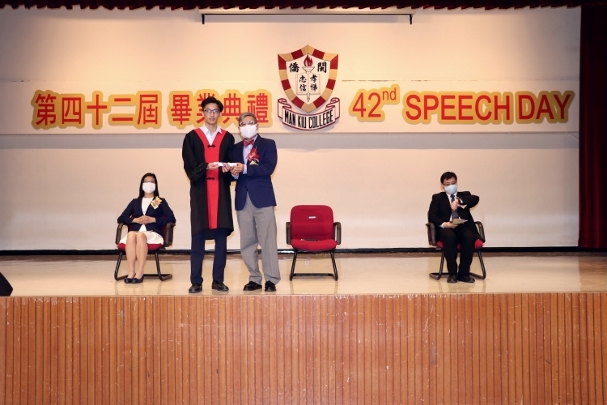 2021年5月28日(星期五)為應屆中六畢業同學舉行「第42屆畢業典禮」,我們十分榮幸邀請到嶺南大學政治學系專業實踐教授----獲頒銅紫荊星章,李彭廣教授(太平紳士)蒞臨本校擔任主禮嘉賓,並惠致訓詞,勉勵畢業生,令典禮倍添光彩。師弟師妹們也為畢業同學助慶;預備精彩表演,計有二胡、古箏和鋼琴聯合演奏及舞蹈表演。畢業典禮是畢業同學成長經歷裡的大日子,各畢業生均上台領受畢業證書,標誌著中學學習階段圓滿結束。當天並得家長踴躍出席觀禮,一同肯定畢業生為完成學業而付出的努力,分享同學的喜悅。