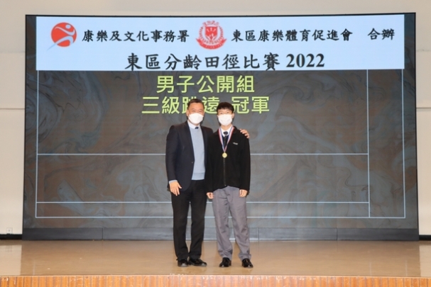 本校同學(六仁)劉旭文 (六禮)何文星及洪輝燁(五仁)參加了上星期在小西灣運動場舉辦的東區田徑分齡賽,分別取得男子青年組110米跨欄冠軍、三級跳遠冠軍以及男子乙組100米冠軍。恭喜各位同學!