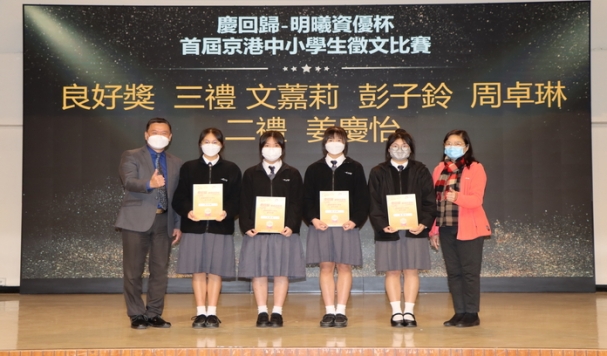 二禮班姜慶怡、三禮班彭子鈴、周卓琳、文䕒莉參加「慶回歸-明曦資優杯」首屆京港中小學生徵文比賽,榮獲良好獎,恭喜各位同學。
