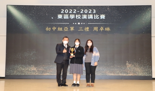 三禮班周卓琳及四禮班陳嘉銘同學在二月十八日參加了東區學校演講比賽 ,兩位同學聲情並茂地演繹,最終分別獲得初中組亞軍及高中組冠軍,成績驕人!陳嘉銘同學更在早會中再次向本校同學演繹演講內容,值得欣賞!