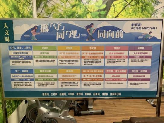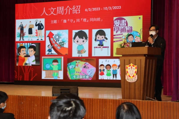 在2023年3月6日至10日為本校人文周,主題是「㩦『守』同『理』同向前」,以守法、同理心的精神,共同邁向新紀元。 除了負責的人文學科外,還邀請了通識科、公民與社會科、音樂科、視藝科、體育科、圖書館、課外活動組、輔導組在該周內籌辦或合辦活動。