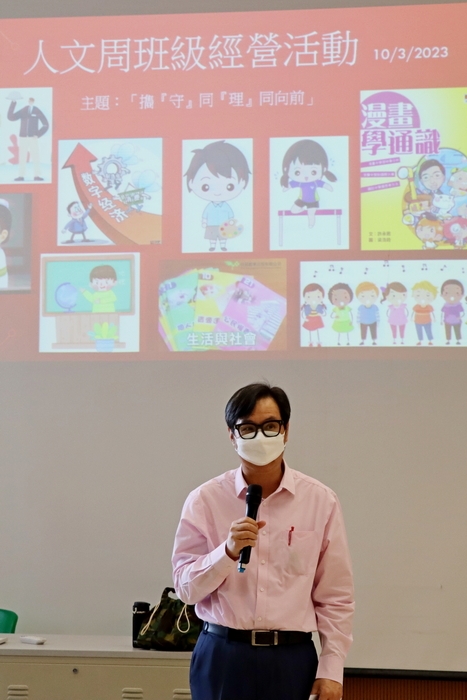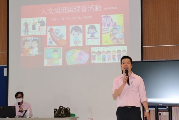 2023年3月10日〈星期五〉,旅遊與款待、生活與社會、中國歷史、音樂和地理科,聯合舉辦人文周班級經營活動,主題為「㩦『守』同『理』同向前」內容包括唱好香港、同心就事成及齊心同闖關。
