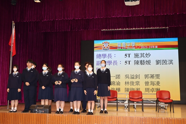 於2023年10月12日,新一屆2023-24學長會當中12位,包括總學長、副總學長、隊長齊集禮台,接受校長委任,過程簡單而隆重。學長會在此多謝校方、各位老師及同學們的支持。學長們定必履行責任,同心協力維持學校的優良校風,共建有誠信、承擔精神及有秩序的校園。