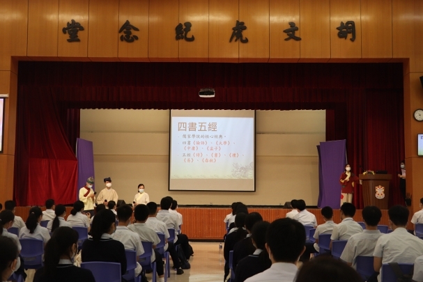 本校中文科為初中同學於7月5日舉辦了中文科活動日,是日初中同學分別參加了不同的文化手工藝活動,包括中一級同學的紙扇繪製活動、中二級同學的皮影戲活動和中三級同學的面譜繪製活動。之後同學們一起觀賞由香港教師戲劇會主演的「中國文化論語劇場 - 子為父隱」話劇,為了加強互動,劇場加插多個停頓位,在每停頓位中加入互動環節,就劇情向學生詢問,令學生更投入參與。活動中包涵了淺講論語知識、論語故事互動劇場演出和文化討論,令學生對中國儒家經典有更深入的認識。