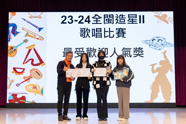 學生會舉辦全閩造星II歌唱比賽,提供平台讓同學發揮所長,展現亮點。今年很多同學報名參加,經過初賽一翻龍爭虎鬥,選出8組同學進入決賽。決賽當天台下同學大力支持參賽者,為我校聖誕聯歡增添歡樂氣氛。最後恭喜勝出同學!