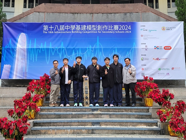 2024年2月24日〈星期六〉,由香港專業教育學院(青衣)舉辦之第十八屆中學基建模型創作比賽2024,同學們運用物理科知識和設計與科技科工藝技術,發揮團隊合作精神,由早上九時至下午五時,限時內用數量有限的木條,製作抗震能力最強之建築模型。