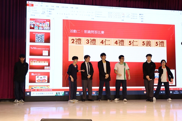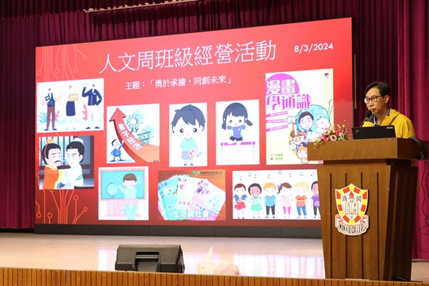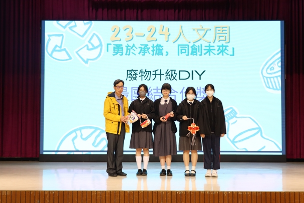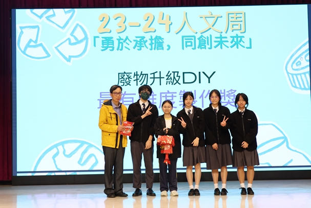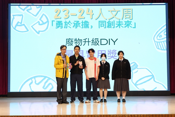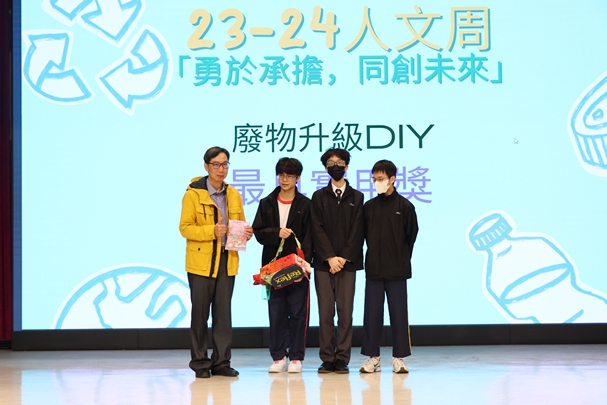 2024年3月8日〈星期五〉,旅款科、中史科、音樂科、地理科聯合舉辦了人文周班級經營活動,主題為「勇於承擔,同創未來」。內容包括廢物升級DIY活動及問答比賽。