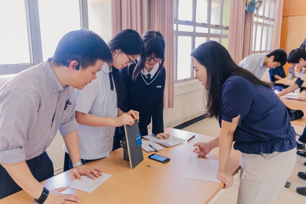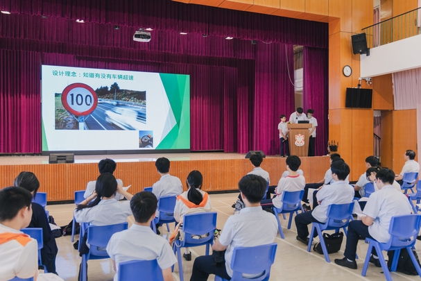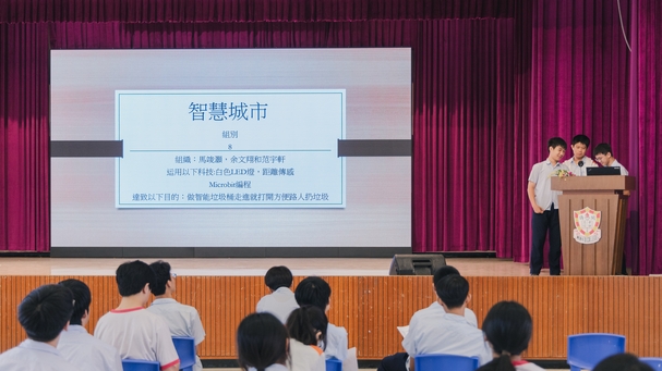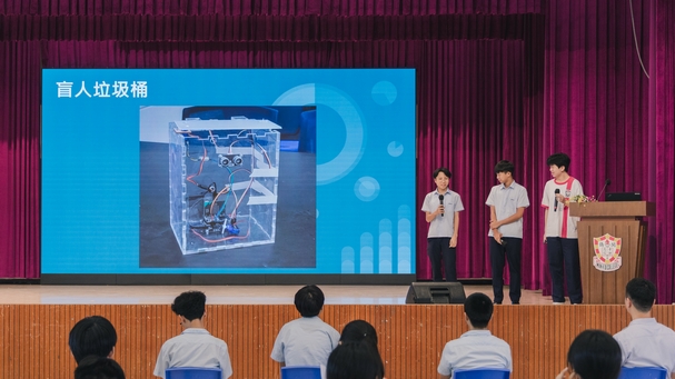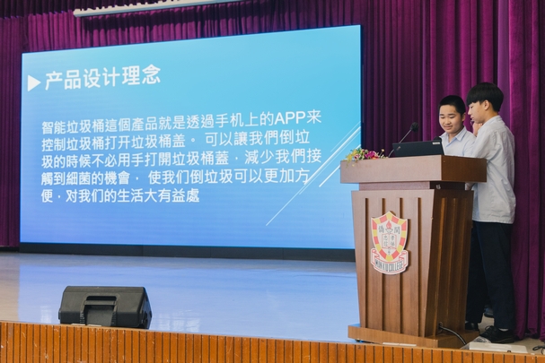 本校於初中推行跨科目STEAM專題課程,經過幾個月的製作及測試,同學終於完成其產品設計,並於匯報日當天展示成果。雖然過程艱辛,但同學均能透過實踐應用各科所學。