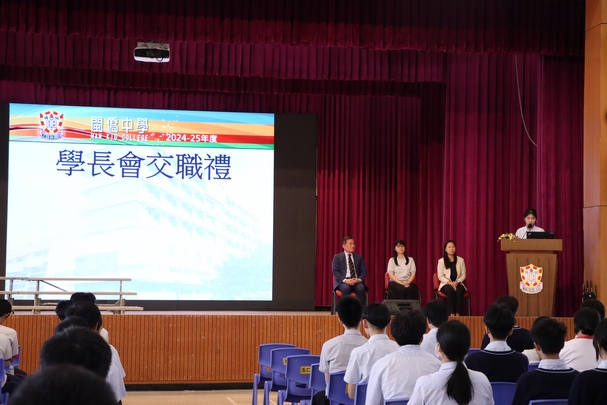 於2024年10月10日,新一屆2024-25學長會當中15位,包括總學長、副總學長、隊長及所有學長齊集禮台,接受校長委任,過程簡單而隆重。學長會在此多謝校方、各位老師及同學們的支持。學長們定必履行責任,同心協力維持學校的優良校風,共建有誠信、承擔精神及有秩序的校園。