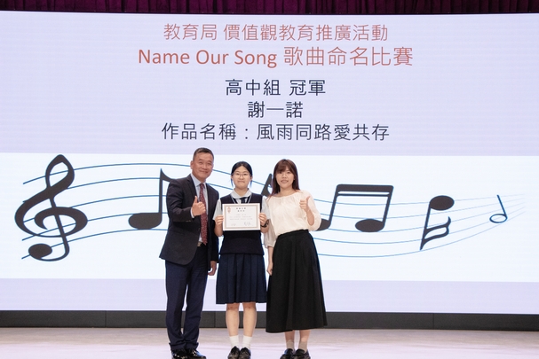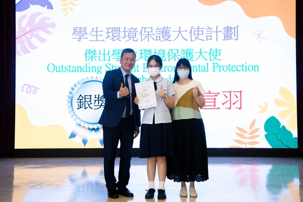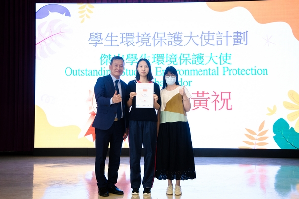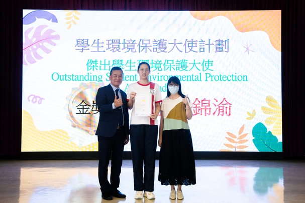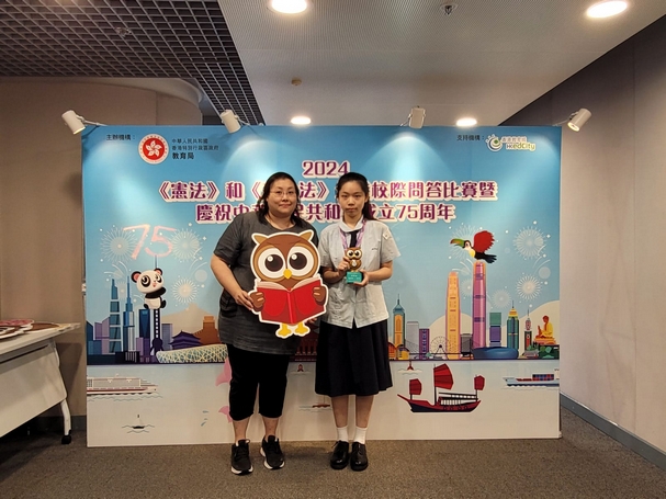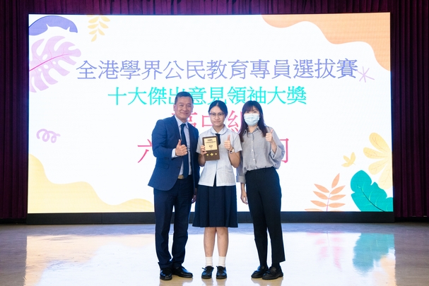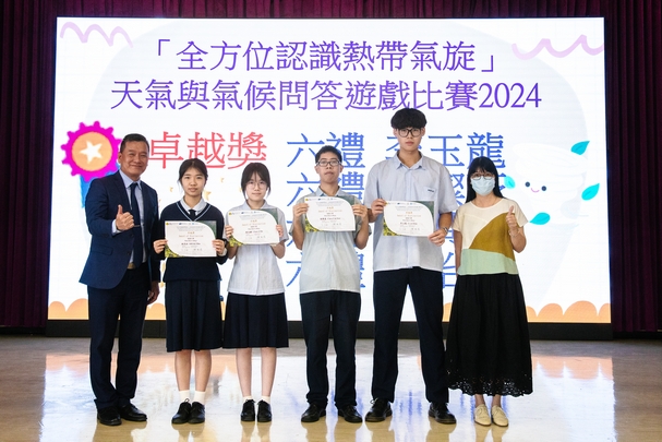 3. 學生環境保護大使計劃「傑出學生環境保護大使 」:金獎、銀獎、銅獎 4. 「全方位認識熱帶氣旋」天氣與氣候問答遊戲比賽2024:卓越獎 5. 「全港學界公民教育專員選拔賽」:高中組 十大傑出意見領袖大獎 6. 「Name Our Song 歌曲命名比賽」:高中組 冠軍 7. 「國民教育吉祥物命名比賽」:中學組 優異獎(理念)