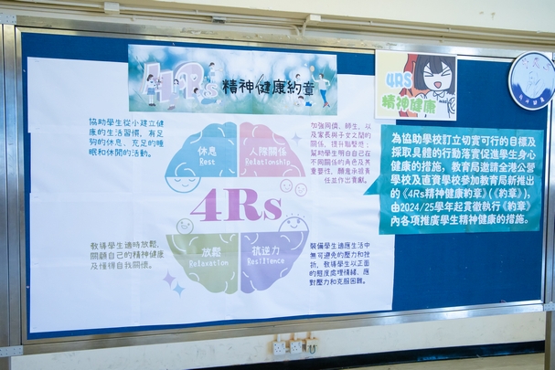 本校輔導組於24年11月8日安排精神健康4R攤位日,中三及中五同學分四組作籌備,總共安排了四個攤位及四個展板,主題是精神健康4R(休息、放鬆、人際關係及抗逆力)。全校師生於早上、小息及中午時段進行活動,同學玩了攤位遊戲及看了展板,於午膳時間本組預訂了雪糕車到校,大家除了獲取小禮物,也可一同吃雪糕,師生、職員、校工開開心心彼此提醒要過精神健康的日子。