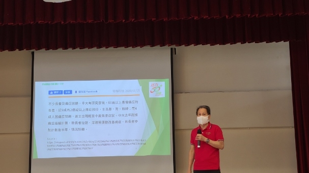 至於當日下午環節則設有「舒緩腰膝疼痛運動工作坊」,由「活力50+計畫」蘇少雄先生主持。透過是次工作坊,讓老師了解腰膝疼痛常見問題、症狀及成因,並學習正確的伸展及強化肌肉運動,以保持身體健康。