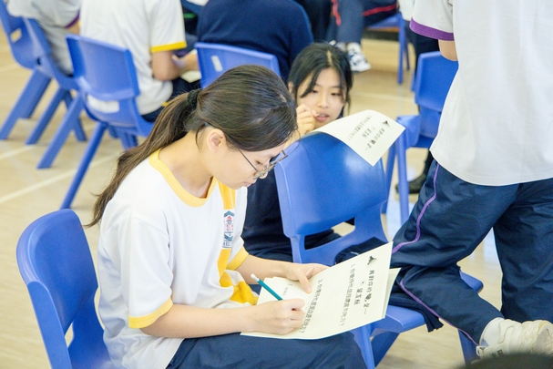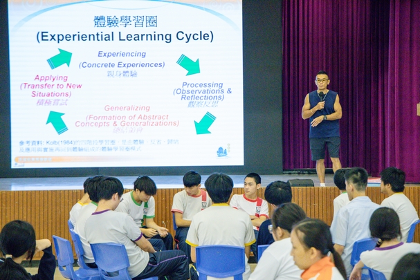 當天先進行了航前工作坊類似的活動,看看同學會有什麼改變。之後, 有不同的集體活動,主要是訓練同學的合作性及溝通能力,同學都表現積極投入。跟住有「全方位海上教室」訓練的相片及錄影播放,讓同學重溫「乘風航」的活動的過程。最後同學填寫留言板給其他同學,從同學給自己的留言,同學可自我反省及檢討整個過程,這樣可令同學認識及了解自己更多!