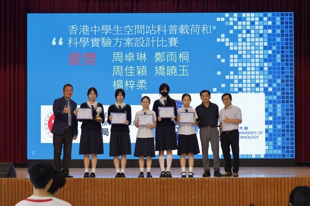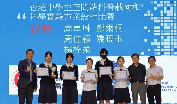 在2025年9月20日周卓琳、鄭雨桐、矯曉玉、周佳穎和楊梓柔參加「香港中學生空間站科普載荷和科學實驗方案設計比賽」頒獎禮,同學的設計方案是在太空培養地衣。由於地衣能促進岩石風化和土壤生成,實驗目的是驗證地衣作為「月球生態工程候選者」的可行性,為未來建立低能耗、可持續的月球生命支持系统提供科學基础。在同學的努力下勇奪方案設計比賽銀獎!