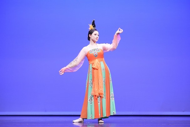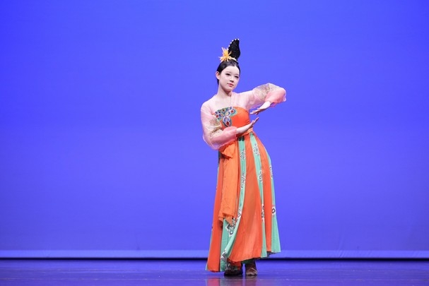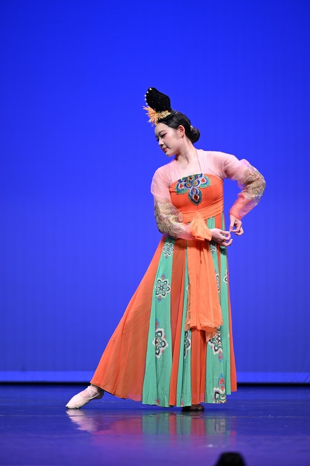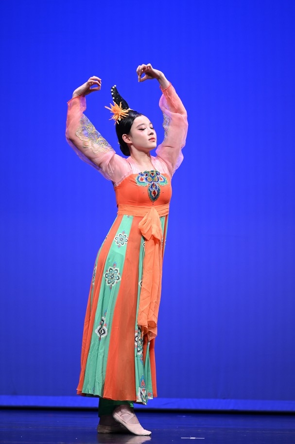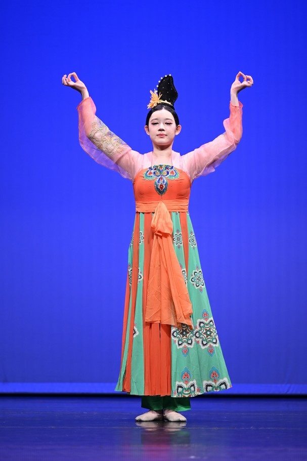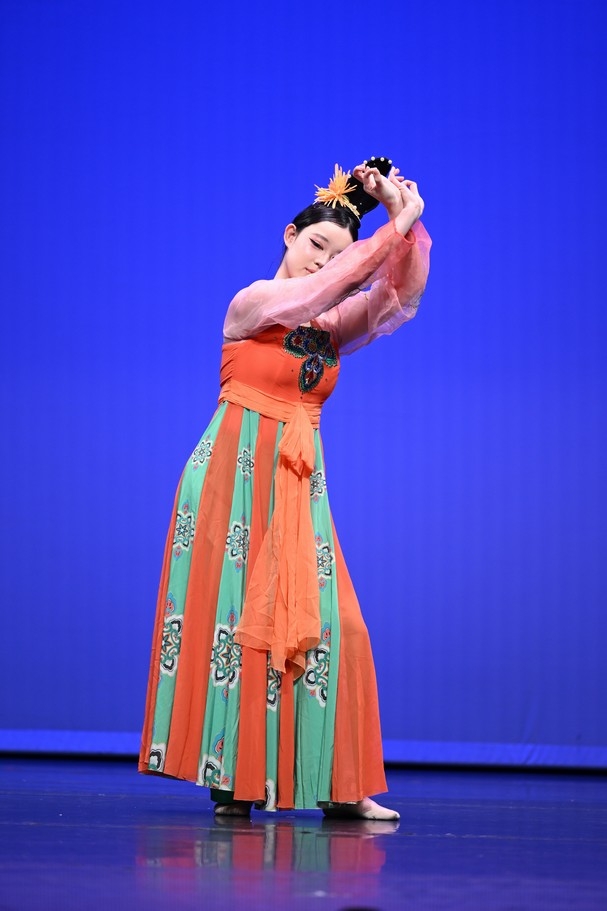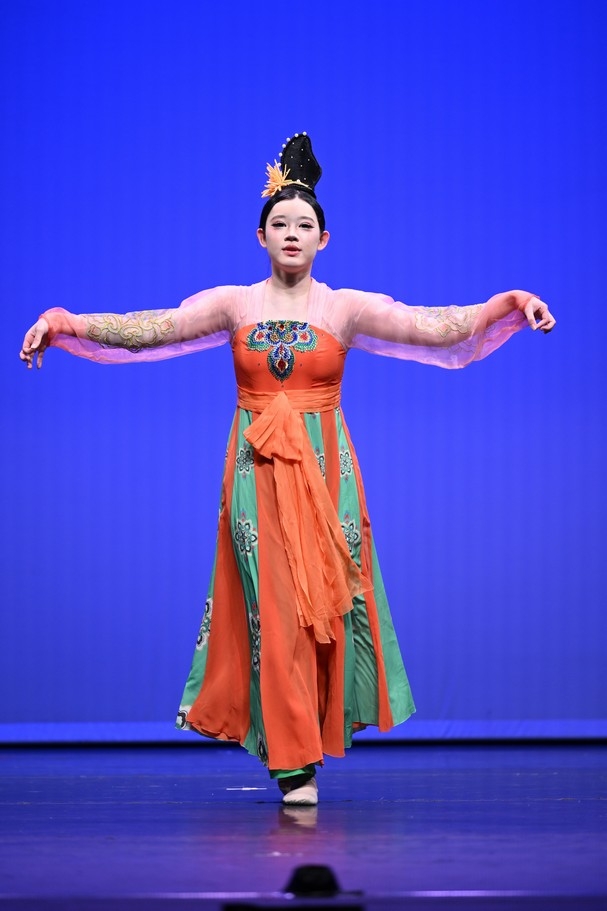 矯曉玉同學造型優美,舞姿流暢細膩,動作與音樂完美融合,展現出濃厚的古典韻味與藝術感染力。評判一致讚賞其舞蹈編排自然流暢,動律隨音樂變化收放自如,時而婉約,時而灑脫,讓觀眾耳目一新。舞台表現力強,情感投入真摯,整體演繹富有層次與感染力,令人回味無窮。