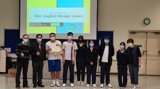 在2021年10月22日〈星期五〉,中五級進行了以英文周為主題的班級經營活動。活動名為MKC English Olympics,這次活動是希望透過英語分組遊戲,培養學生對英語的興趣,建立團隊精神及強調本年度的德育主題「責任感」。當天老師透過四項英語遊戲,包括「Olympic Cheers」、「English Boxing Battle」, 「English Olympic Torch Relay」、「English Triathlon」,以團隊合作、體能技術及英語能力作比試,爭奪最佳體能獎 Best Physical Fitness Award、最佳英語獎 Best English Award、最團結合作獎 Team Spirit Award、最投入大獎Engagement Champion 和全場總冠軍Champion五項大獎,藉此建立學生的團隊精神及表達「責任感」主題。活動當天同學表現積極投入,氣氛熱鬧歡樂,達到愉快學習英語的目標。