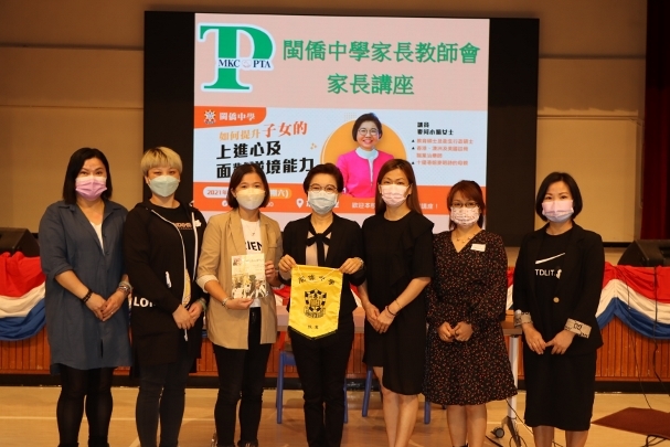 接著的家長講座,家教會邀了麥何小娟主講:「如何提升子女的上進心及面對逆境能力」。講員透過與家長分享過往如何與子女相處,教導子女,包括十優港姐麥明詩,將自己成功的經驗與大家分享,期望各位家長可從中獲啟發,有更佳方法幫助自己的子女成功,大家在講座中獲益良多。