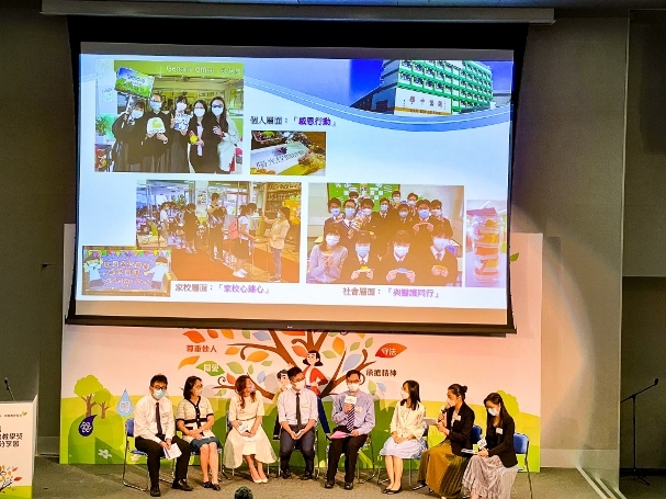 本校校長、老師、家長、學生代表等應教育局邀請,在2021年11月1日〈星期一〉出席教育局舉行的頒獎典禮暨分享會。當天黃玉麒主任分享了本校參與推廣上述價值的亮點和持續推動的心得。