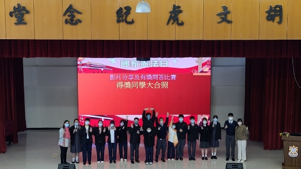 為增加學生對《憲法》和國家最新發展的認識,公民教育組於12月1日舉辦了「國家憲法日」活動,包括參加2021「國家憲法日」網上問答比賽,以及由《基本法》學生校園大使舉辦影片分享會及問答比賽,由學生大使設計壁報及擬定問答題目,並於活動日當天擔當司儀。參與同學於當天表現積極,更有不少同學贏得小禮物!