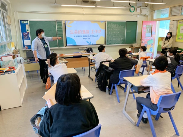 香港基督教服務處北角樂Teen會何社工於2021年11月26日〈星期五〉蒞臨本校,以「生命的溫度」為題,為同學進行工作坊。 何社工透過互動及體驗模式,協助學生探索生命的價值和意義,並培養珍惜生命的態度! 以下是當天的照片,歡迎各位家長、老師、同學或親