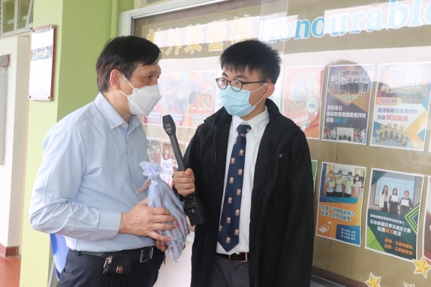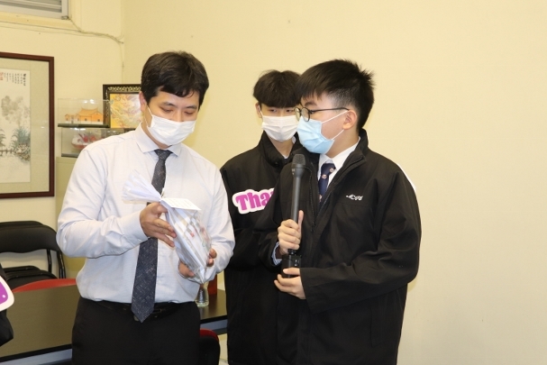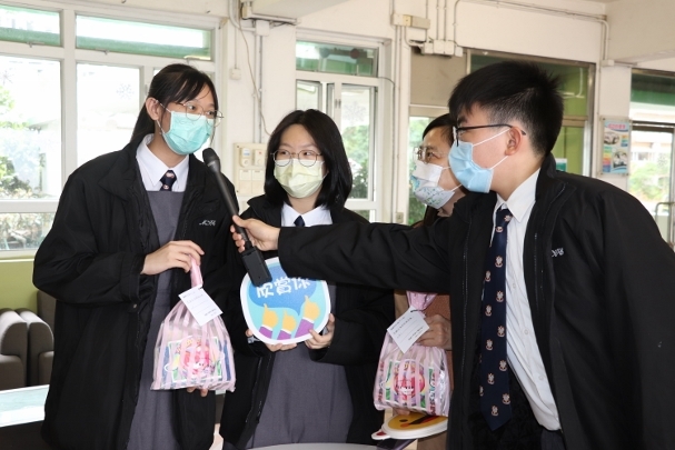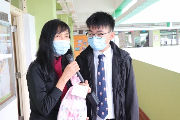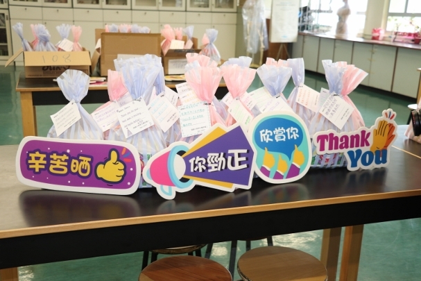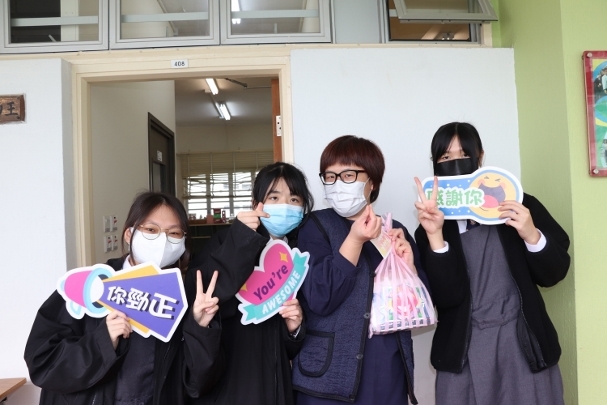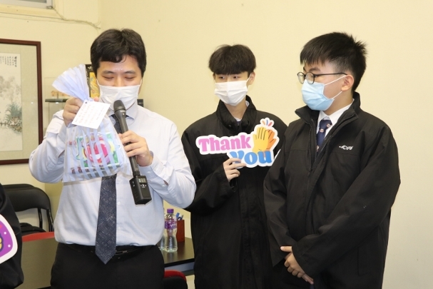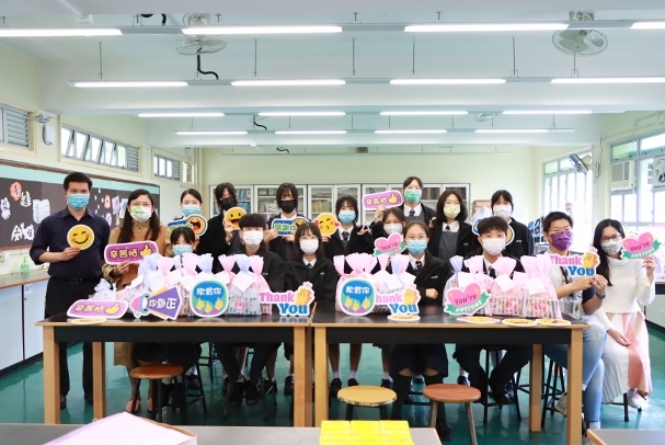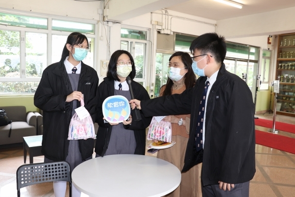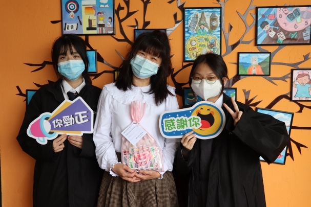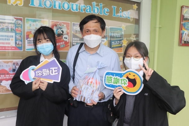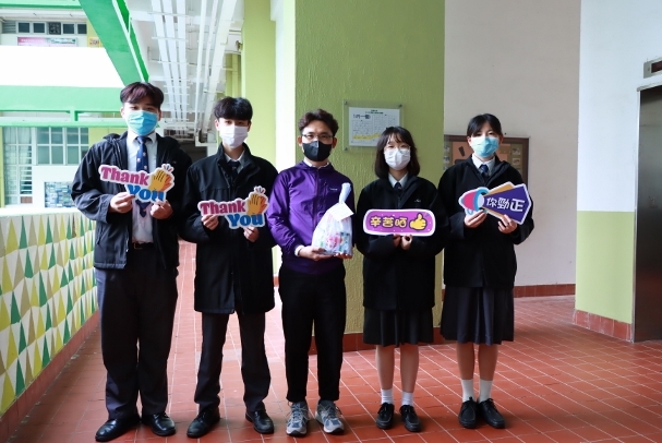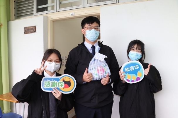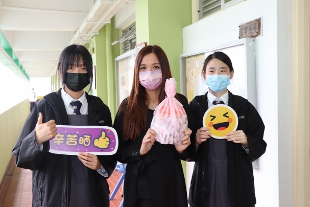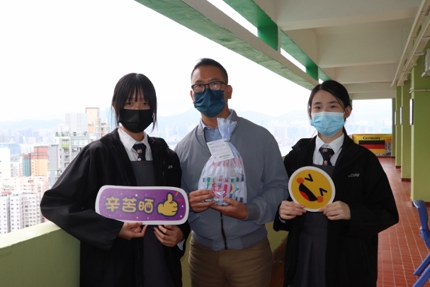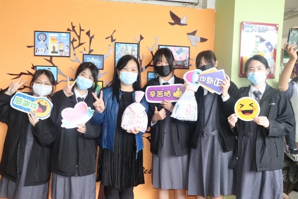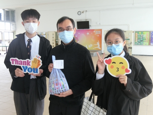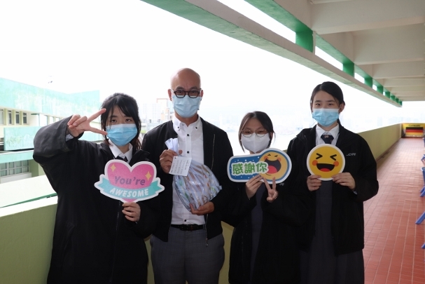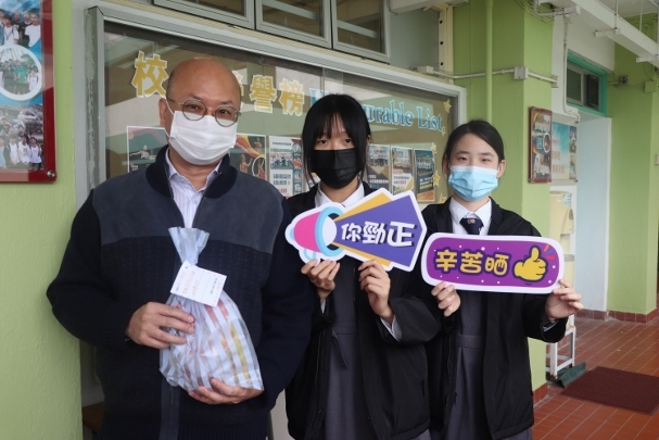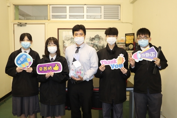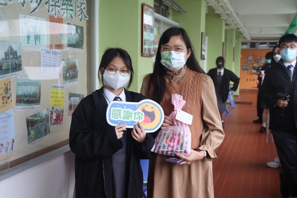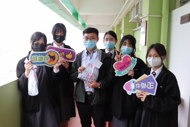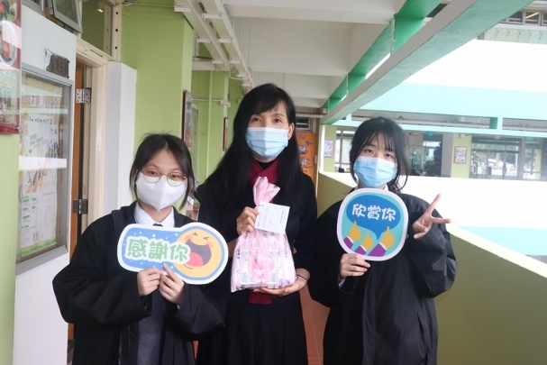 本校學生團契於21年12月15日安排〝 感謝你〝行動。 學生向校長、教師、職員、校工及小食部員工 派發心意禮物:包括一個湯包、眼鏡或電腦纖維布、充滿聖誕氣氛的口罩, 及同學親筆寫的心意卡,祝福全校教職員身體健康! 笑口常開! 最後大家一同開開心心拍照留念!
