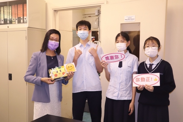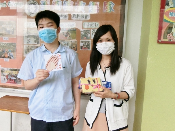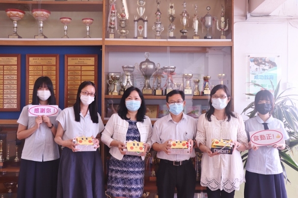 本校學生團契,於2021年5月14日安排〝 感謝你〝行動。 學生向校長、教師、職員、校工及小食部員工派發心意禮物及一張由同學親筆寫的心意咭,學生也親自包紮禮物! 最後學生與教職員一同開開心心拍照留念!