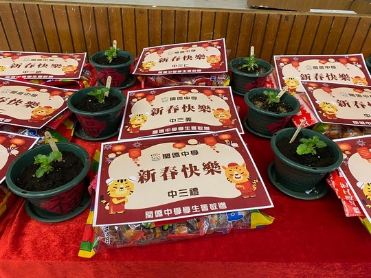 就快到農曆新年,身為閩僑中學大家庭的一份子,學生會聯同課外活動組和公民教育組一起合辦了「佳節表濃情之虎躍新程」,希望校長、各位老師、各位同學在新一年能像老虎一樣一躍千里。首先,「閩僑許願角」希望新一年能夠心想事成、願望成真。另外,「送舊迎新洗邋遢」希望同學注意防疫、身體健康。最後,更有「虎年新春大放送」派發揮春、賀年糖果及賀年盆栽,希望新一年能夠甜甜蜜蜜、開開心心。閩僑中學祝大家新一年虎躍新程。