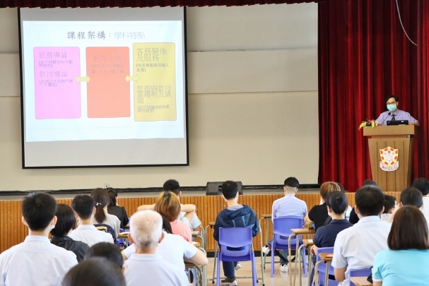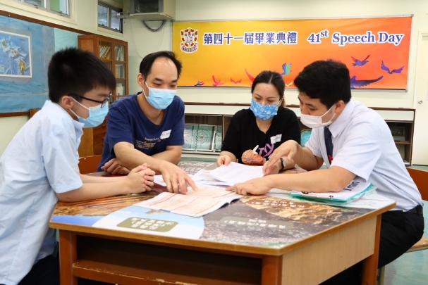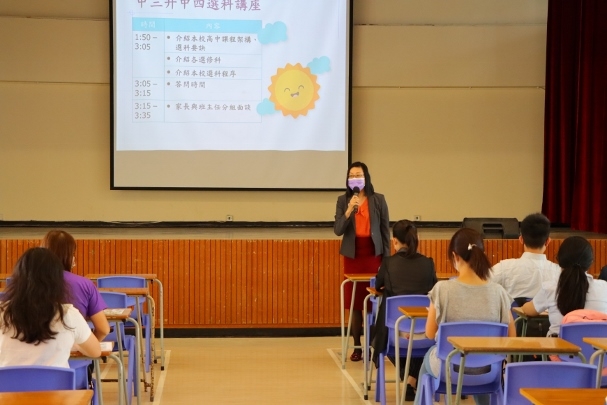 2021年5月6日中三升中四選科講座 本校於5月6日舉辦中三升中四選科講座,讓家長和同學了解本校高中課程架構、各選修科目的課程內容、以及相關升學出路資訊。很高興家長能百忙抽空出席是次講座,與子女共商選科意向。除班主任外,各選修科老師也參與當中,為每位出席家長及同學提供適切意見,讓同學了解自己的意向,並作出合適的選科組合。