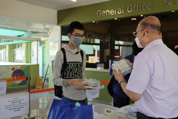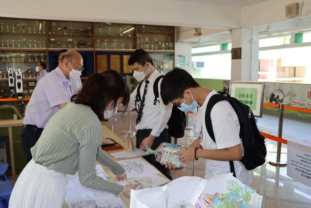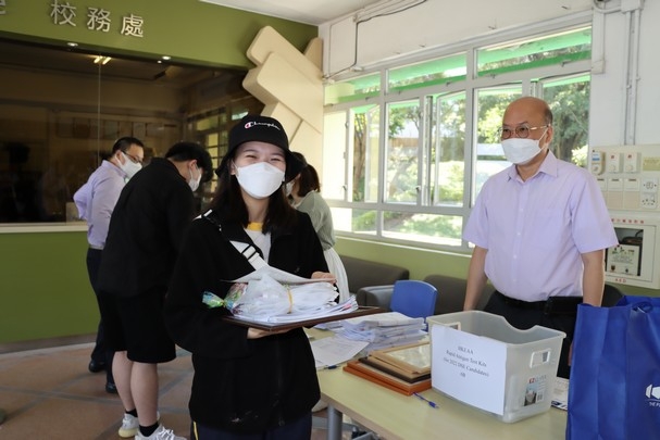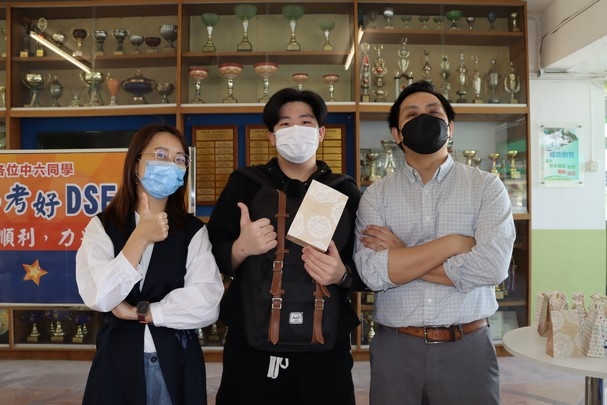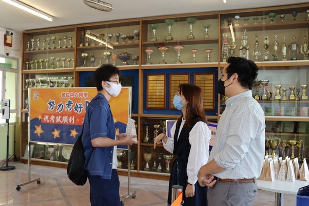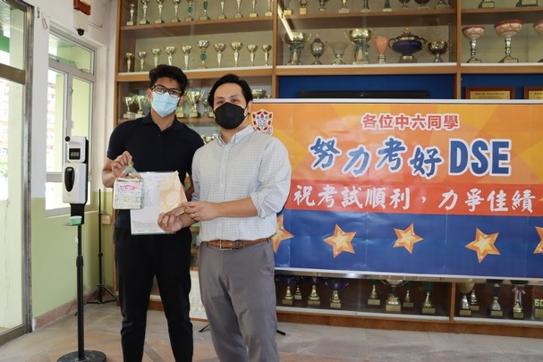 今日(4月8日)是中六同學回校領取香港中學文憑試准考証及防疫物資,班主任親自派發及送上祝福。校方及學生會也特為中六同學送上「心意包」,並設計打氣壁佈,希望在疫情下,與同學並肩同行,鼓勵同學追尋夢想,在DSE力爭佳績。