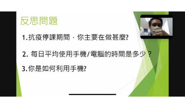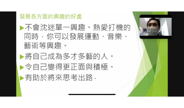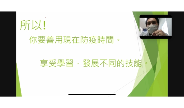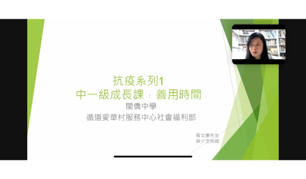 本校駐校社工張文康先生、吳少芝姑娘於2022年3月28日〈星期一〉為中一級同學進行了網上成長課,主題是「善用時間」。 講座旨在教導同學善用時間、探索新興趣及反思成長,讓同學可以善用特別假期享受學習,發展不同的技能。 以下是當天的照片,歡迎各位家長、老師、同學或親友觀賞!