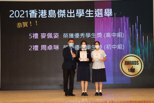 恭賀本校同學榮獲2021香港島傑出學生選舉優秀學生獎,嘉許同學對學校及社會有承擔,並表揚他們所付出的努力。 高級組: 五禮 麥佩姿 初級組: 二禮 周卓琳