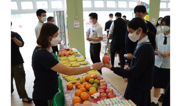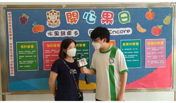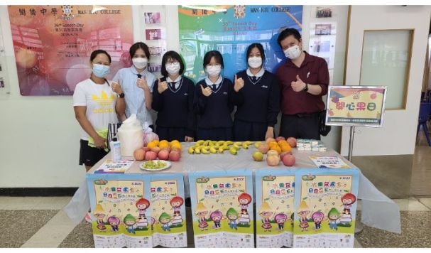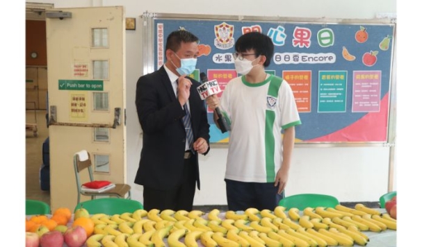 本校於2022年5月30日〈星期一〉開始回復全日面授課堂。家長、學生會成員、及健康大使在3樓禮堂門口及地下操場派發飯後水果,並在操場設有獎問答遊戲,以宣傳並鼓勵老師和同學建立每天吃水果的健康習慣,師生們都十分踴躍參與。