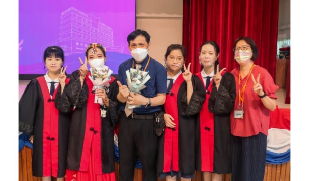 在2022年6月18日〈星期六〉,第43屆畢業典禮後,畢業生穿著畢業袍與嘉賓、校長、老師、家長和同學拍照留念,場面愉快溫馨!