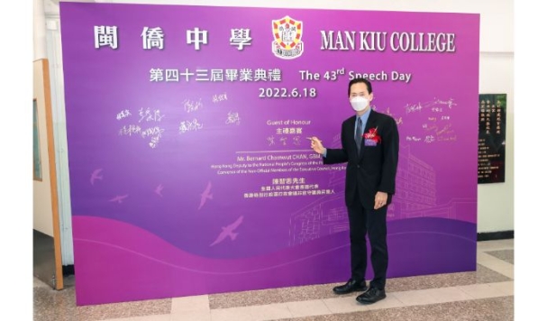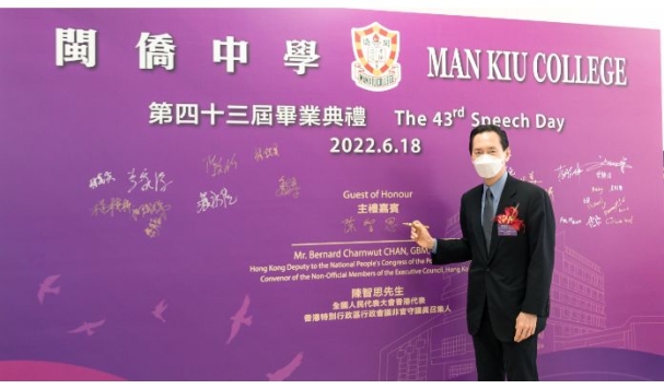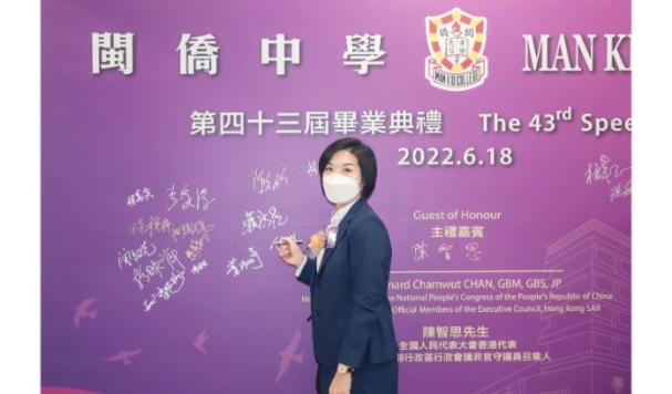 2022年06月18日 : HK01 校園天地 報道|陳智思議員擔任閩僑中學畢業典禮主禮嘉賓