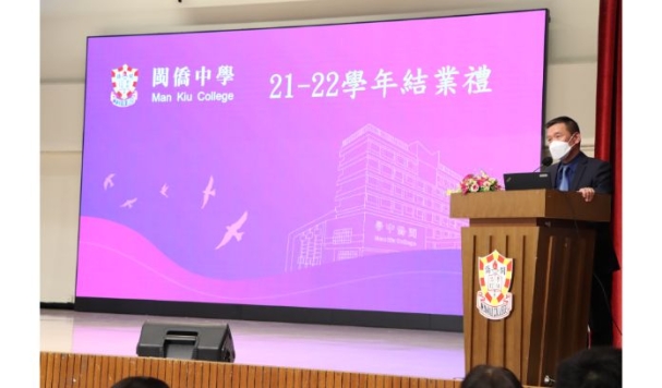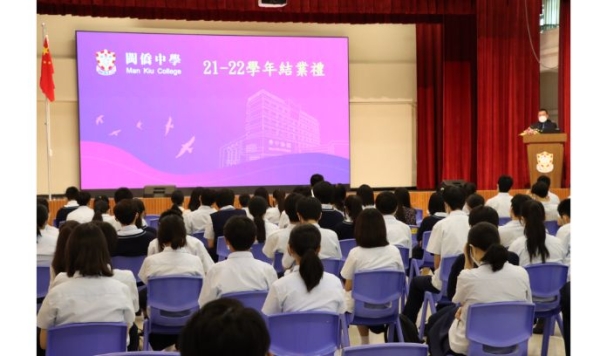 結業禮中,校長訓勉同學繼續努力學習,並頒發各項學業獎和個人發展獎勵計劃金獎予本學年有優異表現的學生。