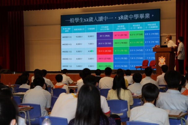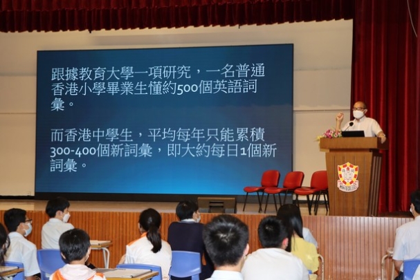 本校英文科於9月29日〈星期五〉周會中邀請了英詞學習系統SolidMemory創始人葉金豪先生蒞臨分享學習英語的心得及方法,讓學生了解到學習英語詞彙的重要性,同學反應熱烈。