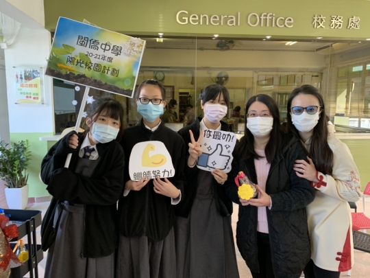 駐校社工與輔導組在 12 份舉辦「伴我同行」社交小組,透過網上活動,教導同學交友之道,並且學會戚恩。該小組在 2020 年 12 月 21 日進行「陽光校園計劃:戚恩行動」' 行動內容包括事前製作「繁花之燈」座檯飾物,並於當天致送給校長、副校長和班主任等,喻意著多謝師長們的教導。