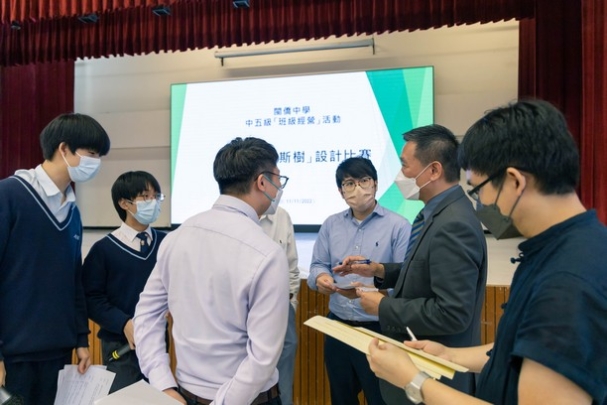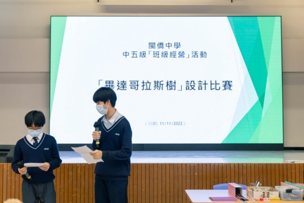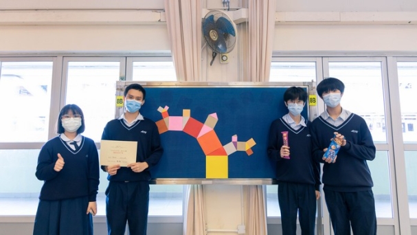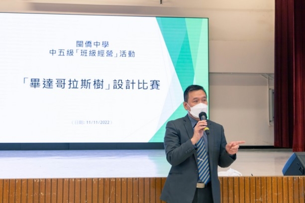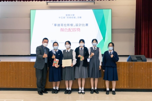 配合本校「數理周」為主題,中五級班級經營活動特意舉辦「畢達哥拉斯樹」設計比賽,期望同學能以畢達哥拉斯平面幾何的基本而重要的定理為基礎,以創意思維剪裁和拼貼出不同發展角度形態的樹。是次活動邀請到本科為數學專家的彭校長作評判和頒獎嘉賓。形式為兩班共分七組,活動過程各組同學認真討論、分工、設計及剪裁,表現熱烈,投入參與,各組作品各具特色。最後,其中四組分別奪得“團隊精神”獎、“別樹一格”獎、“形態設計”獎及“顏色配搭”獎。