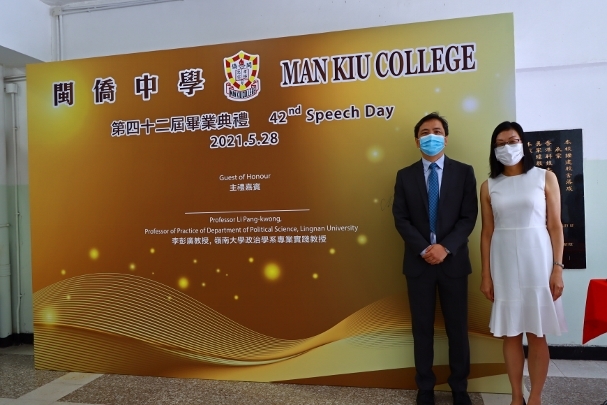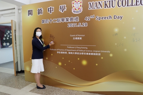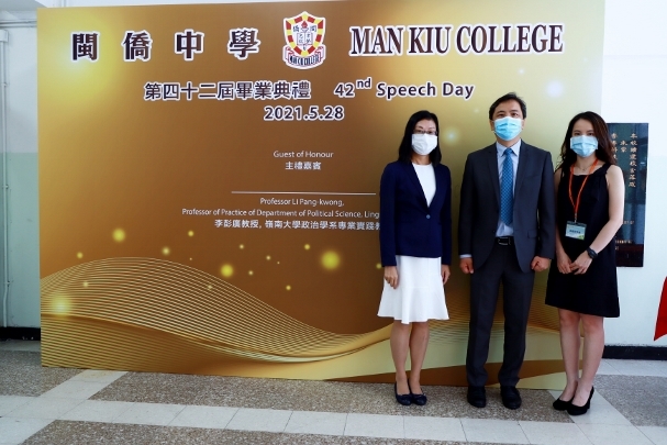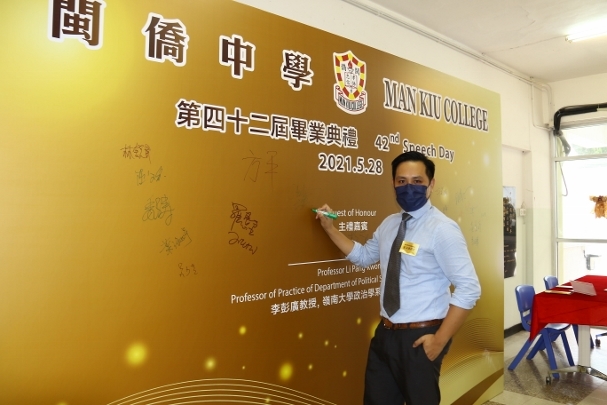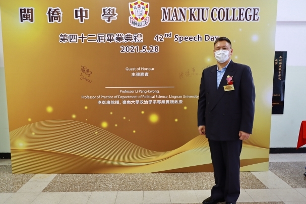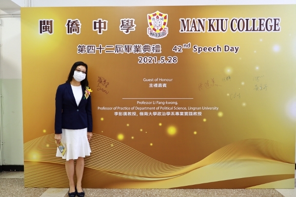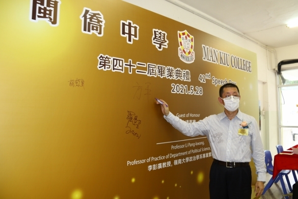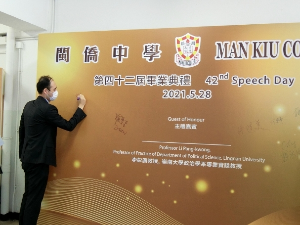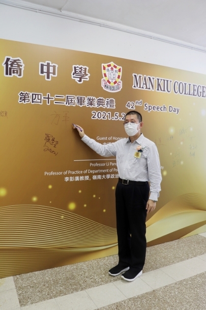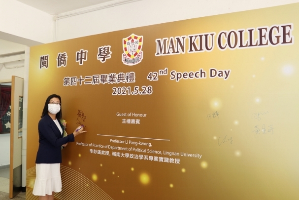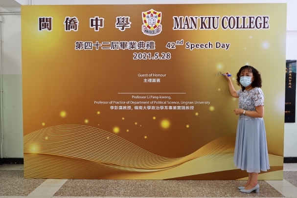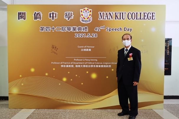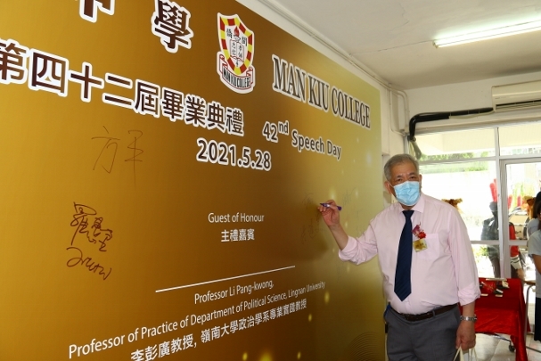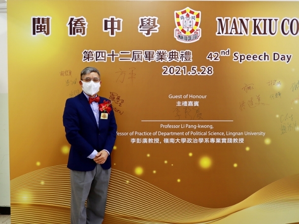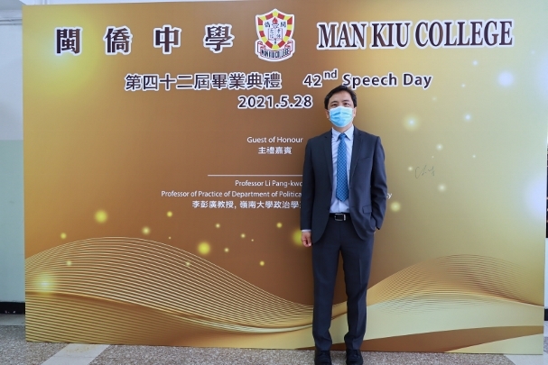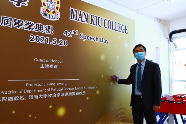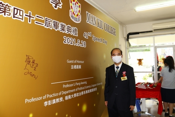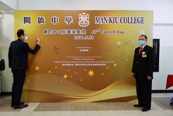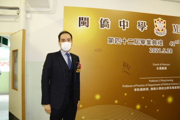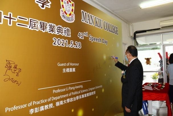 2021年5月28日(星期五)為應屆中六畢業同學舉行「第42屆畢業典禮」,我們十分榮幸邀請到嶺南大學政治學系專業實踐教授----李彭廣教授(太平紳士)蒞臨本校擔任主禮嘉賓,並惠致訓詞,勉勵畢業生,各界嘉賓、畢業生家長及親友亦紛紛到賀,令典禮倍添光彩,校方藉此致以衷心謝意。